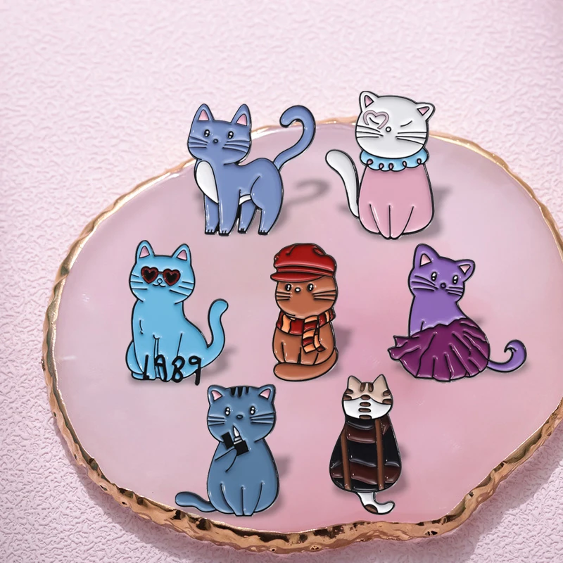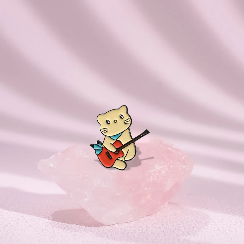 Cat Brooches Lapel Badges Cartoon Animal Jewelry Gift for Kids Friends Music Cat Enamel Pins Custom 1989 Cute Guitar