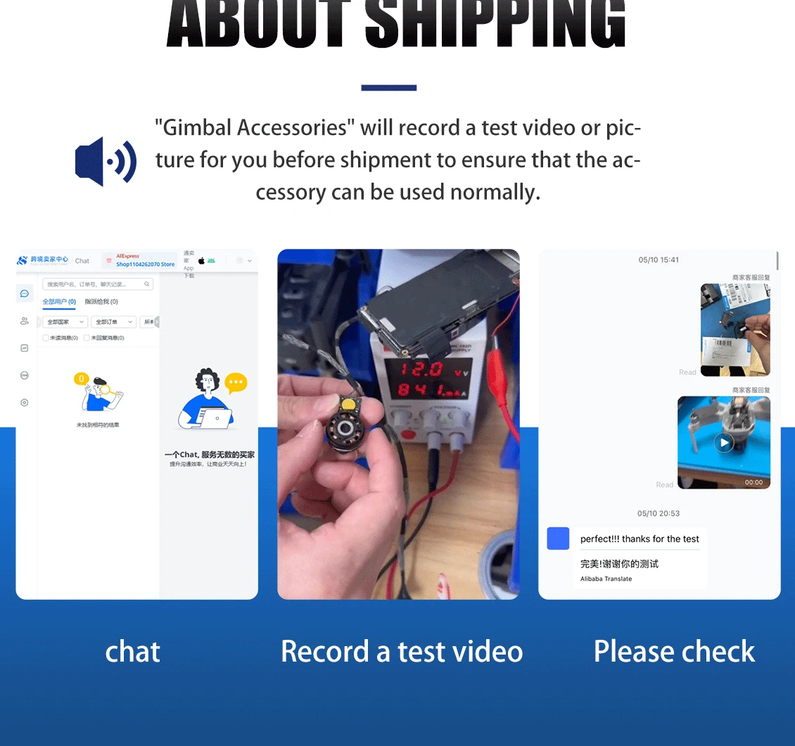 3. Each piece must be tested before shipment, and keep all shipping pictures and test videos!